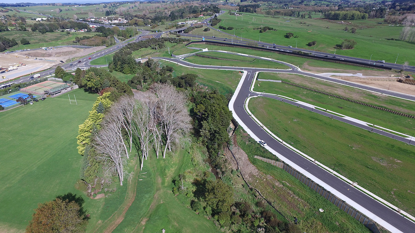 Aspire were responsible for the preparation of Engineering documents including the geometric and pavement design for new public roading infrastructure, hydraulic design of new stormwater reticulation, dynamic routing design of the new stormwater treatment wetland and public water and wastewater services.